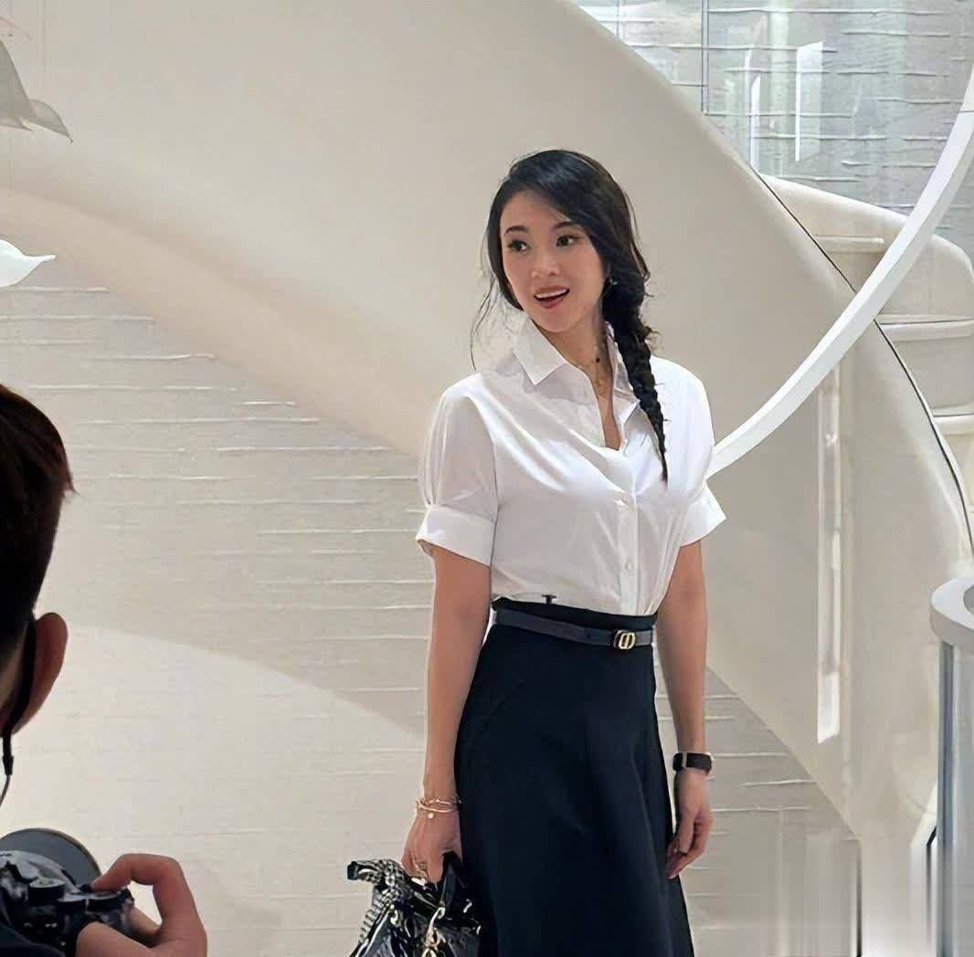 章子怡身上的白衬衫,面料和质地俱佳,穿上自带贵气。衬衫深V设计,自然向下延伸,让颈部线条更显修长。